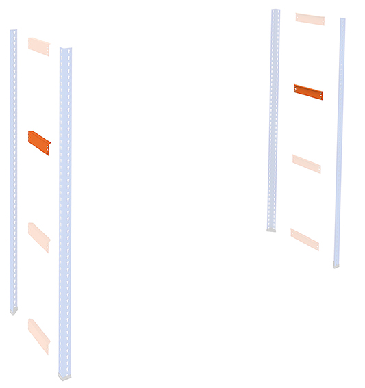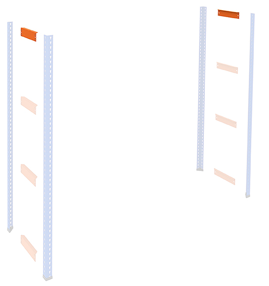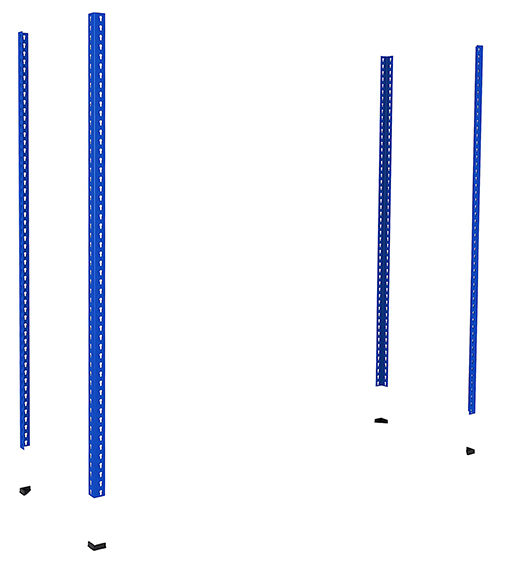 - 4 blauwe geperforeerde verticale staanders van 1981 of 2438 mm hoog met kunststof voeten.