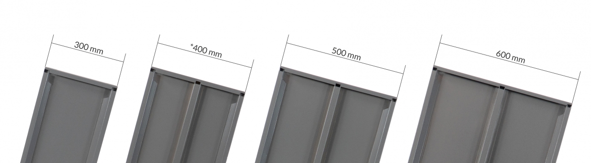 * Behalve de 300 mm diepe legborden, die het niet nodig hebben, zijn alle overige legborden (400, 500 en 600 mm diepte) voorzien van een versterkende dwarsbalk.