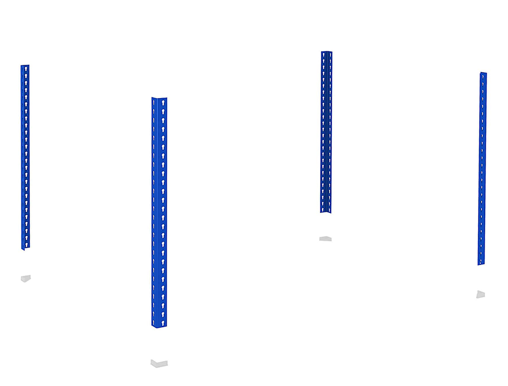 - 4 blauwe geperforeerde staanders, 914 mm hoog.