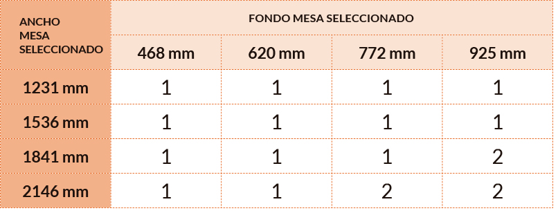 AANTAL DWARSBALKEN PER NIVEAU VOLGENS AFMETINGEN WERKBANK